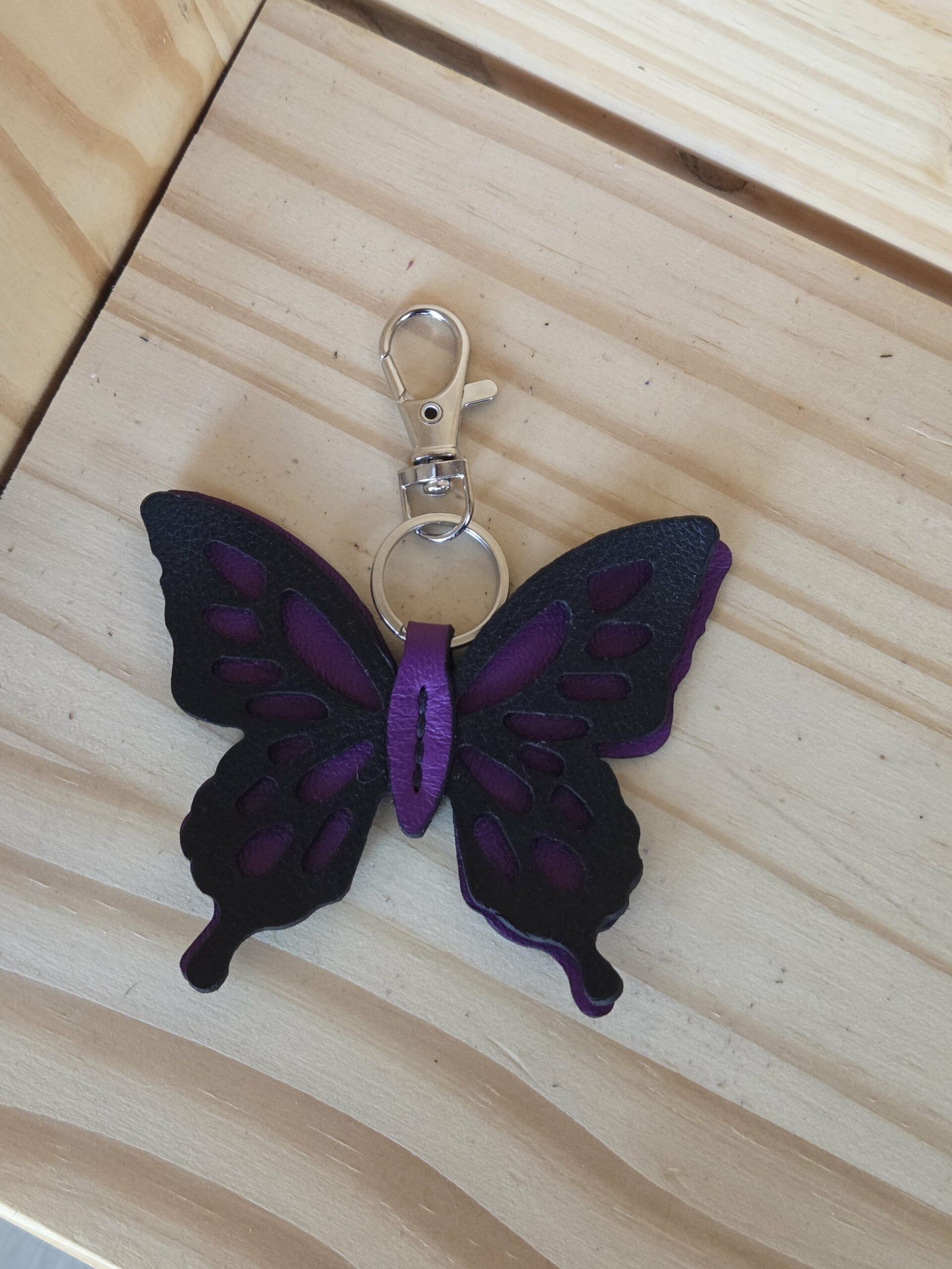 Porte clé papillon rouge et noir, les associations de cuir sont uniques