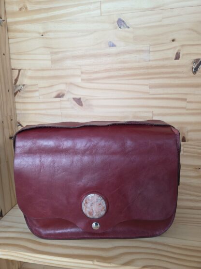 Ce sac en cuir bordeaux est bien plus qu’un simple accessoire : il allie un design raffiné, une finition soignée et une touche de spiritualité grâce à sa pierre naturelle intégrée.